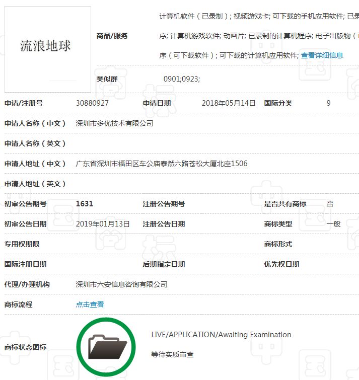 总体看来,这个商标的多数类别已经被提起注册,排除十天内的盲期,目前只有第2/4/13/15/17/19/23/26/27/37/40/44/45等13个类别里没有被提交注册,但是这也并不意味着在这些类别里提交注册“流浪地球”能够被成功核准。