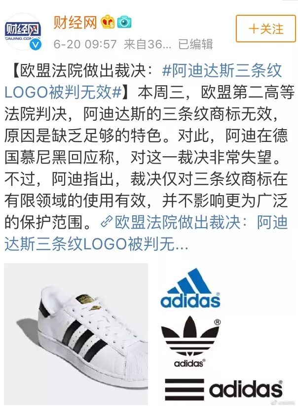 一向引领潮流的阿迪达斯运动品牌,你一定不会陌生。但是商标圈小编最近得到消息称:就在前几日阿迪达斯失去了他备受万千宠爱的“三道杠”欧盟注册商标!