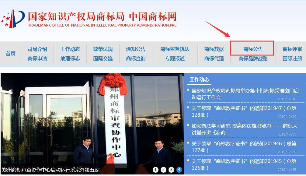 首先,进入国家知识产权局商标局官网http://sbj.cnipa.gov.cn/,点击商标公告;