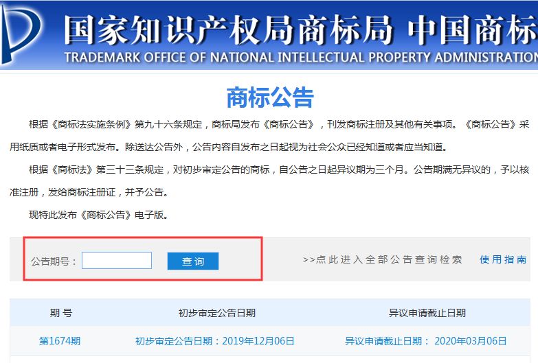在商标公告页面可以看到每一期的商标公告发布情况,一般网站更新频率为每周一次;
