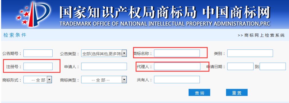 在此页面,输入商标的名称、注册号、申请人、代理人和申请日期等信息进行查询。
